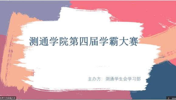 为切实加强学院学风建设,落实立德树人的根本任务,健全我院学风建设长效机制,营造学生勤学好学的良好氛围,培育优良学风,激发学习动力,助力学生成长成才。按照学校学风建设系列活动的通知,测通学院学生会学习部于5月23日至6月14日举办了以“做最强学霸,展测通风采”为主题的第四届学霸大赛,本次活动历时三周,各年级累计参与达四百余人次。