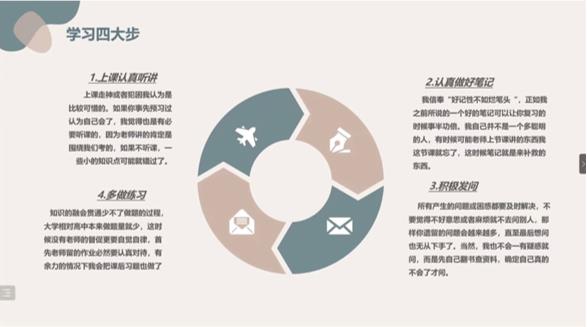 经过初赛,共有七名同学、两个寝室和两个班级进入了学霸大赛系列评选活动的决赛。6月14日14:30,学霸大赛决赛通过线上的形式正式开始,各位参赛选手或团体代表利用3-5分钟的PPT答辩演讲,陈述个人或集体在大学期间的学习表现、素质拓展、实习经历、实践能力和高光时刻。选手们发表了各自对学风建设的看法和建议,并结合自身经历勉励大家刻苦学习,以高光时刻激励大家奋勇向前。本次大赛设置了三个奖项,分别是“学霸个人”、“学霸寝室”和“学霸班级”。