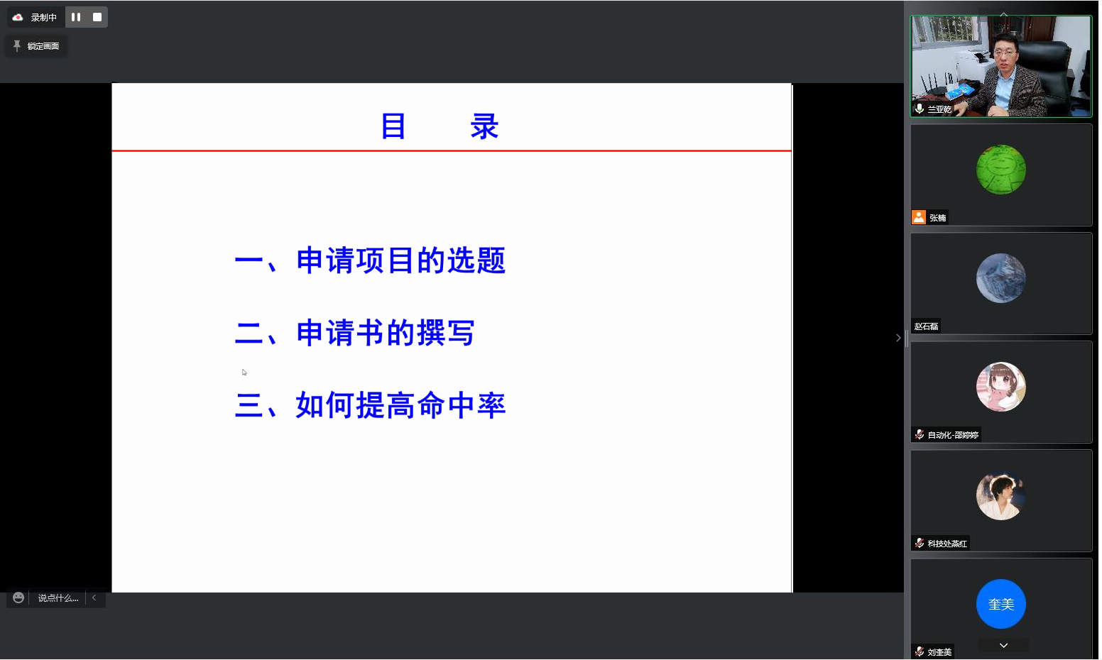 兰亚乾教授作为国家自然科学基金的评审专家,在基金申报和项目评审方面有着丰富的经验。本次报告主要从申请项目的选题、申请书的撰写、如何提高命中率三个方面,针对国家基金的改革举措、选题的基本原则和方法、申请书的撰写思路和注意事项进行了深入浅出的讲解,具有很强的针对性和实用性。