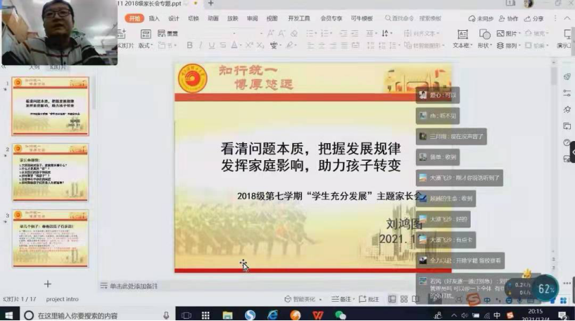 计算机18-10班刘耘伯家长表示,刘鸿图老师为家长分析了问题,开拓了思路,擘画了前景,找到了对策。在刘老师的引导下,真正实现家校共教共育,让我们与孩子一起为未来努力。