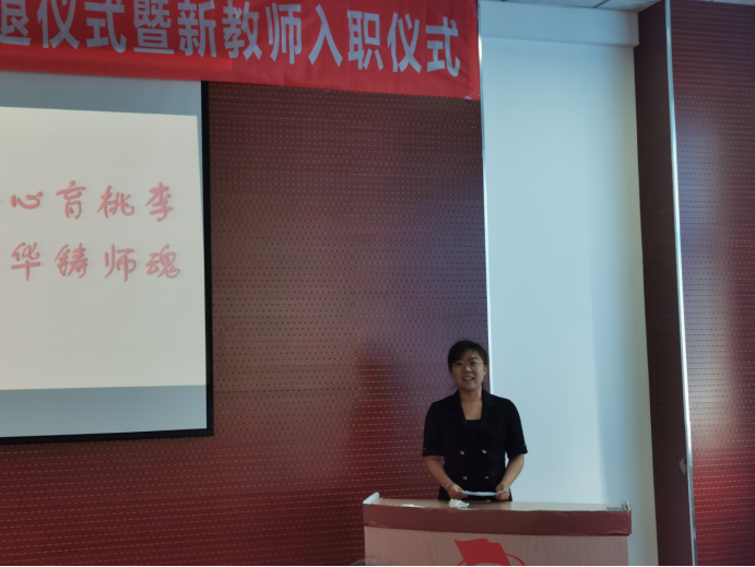 退休教师代表赵明媚表示:老教师在这个舞台上的谢幕,新老师在这个舞台上登场,她希望,年轻教师接好老教师的接力棒,在这个舞台上不断创造新成绩。赵明媚老师说做好一名思政课教师应该做好以下四点要求。首先,爱岗敬业,尊重自己的选择。其次,用心教学,超越自我。爱这一行就要用心去做,要用心备课;用心讲课;做学生的知心朋友。再次,勤奋钻研,提高自我。她强调作为教师更要加强锻炼,健康自我。最后她感谢领导、同事们一直以来关怀和帮助。