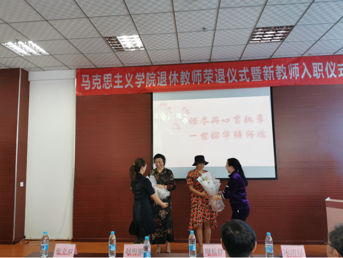 9月5日上午9时,新主楼E1304会议室温情洋溢,马克思主义学院隆重举行退休教师荣退仪式暨新教师入职仪式。校党委常委、宣传部部长周长群、教务处处长宋清昆应邀出席仪式,马克思主义学院全体教师参加,仪式由学院党委书记李燕军主持。
