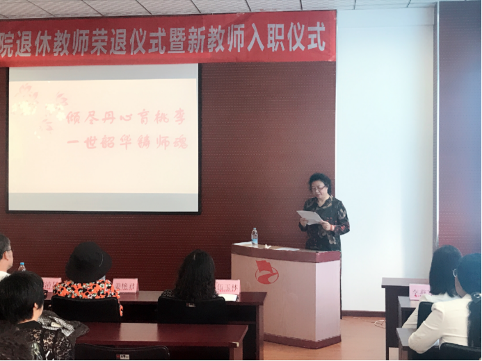 学院举行这个简单而隆重的仪式,既表达了我们对老教师们辛勤付出的充分肯定以及对她们精神的传承,也是对在职教师的一种学习和激励,更对师德师风建设及传承和弘扬尊师重教文化有着深刻意义。