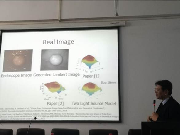 10时30分Yuji Iwahori教授作了题为“基于神经网络的内窥镜息肉的3D重建及模式分类”的学术报告,受到本学院教师和三个学院学生的热情欢迎,报告会现场座无虚席。