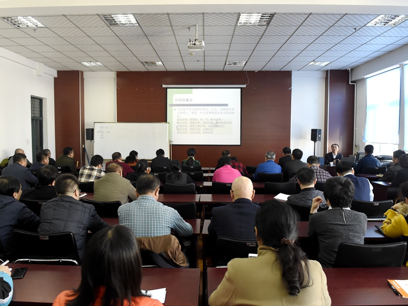 11月5日下午,校纪委在新教学主楼E1304会议室组织开展《中华人民共和国合同法》专题讲座。法学院教师李俊刚以“合同签订与履行风险防范”为题进行讲解,学校办公室、纪检监察处、人事处、计划财务处、审计处、后勤管理处、国有资产管理处、国家大学科技园等部门处级干部和相关科级干部共52人参加讲座。