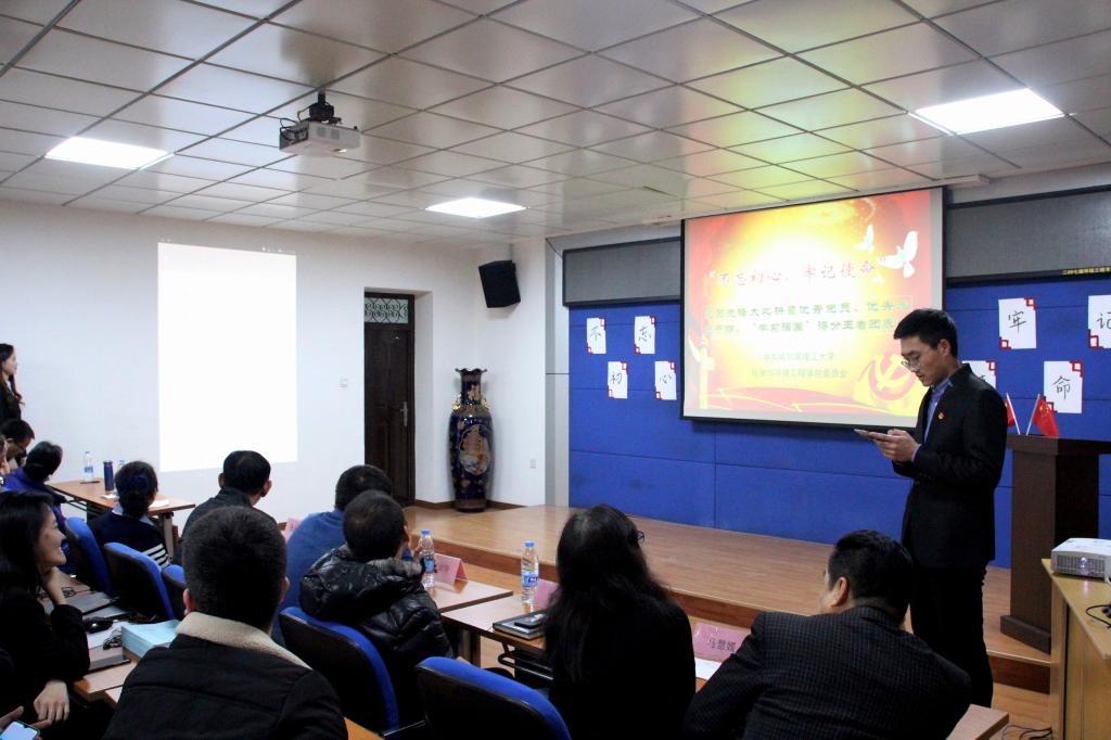 为了更好的开展“不忘初心、牢记使命”主题教育,检验党员在主题教育中的学习成果,进一步加强学生党建工作。11月26日在化工楼430会议室,化工学院成功举办“不忘初心、牢记使命”党员先锋大比拼暨优秀党员、优秀党员干部、“学习强国”得分王者团表彰活动。校党委学生工作部部长杨忠学、校“不忘初心、牢记使命”第二巡回指导组成员雷贲、院党委书记徐春霖、院长张桂玲、院党委副书记高山、副院长马慧媛、全体辅导员老师以及70余名学生党员参加了此次活动。环境工程系党支部书记魏金枝、实验中心党支部书记颜婉茹、学生党支部书记严孝春、张希超、刘东日等五位老师担任先锋大比拼的决赛评委。