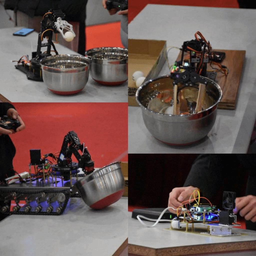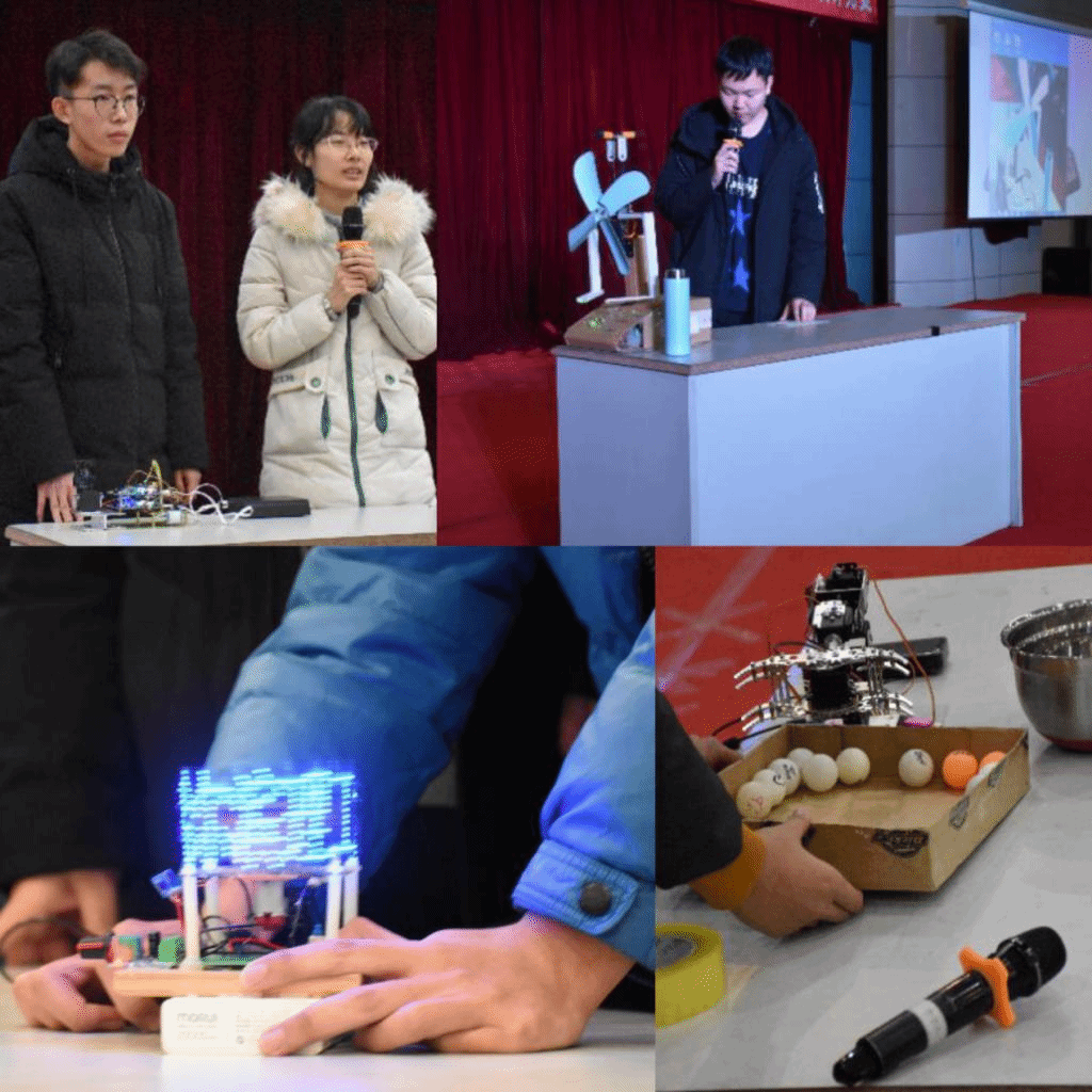本次比赛以“智慧理工,自创未来”为主题,旨在培养学生的科技创新能力和动手创造能力,设立了智能节能风扇、遥控机械臂(互动)、旋转led、越障机器人、LED灯创意设计五个项目,得到了同学们的积极响应。五点五十分灯火辉煌的0220报告厅就已座无虚席。参赛选手在紧张、忙碌的调试着自己的作品,从熟悉的操作中就可以看出参赛选手的精心准备,当主持人宣布开始时雷鸣般的掌声经久不息。
