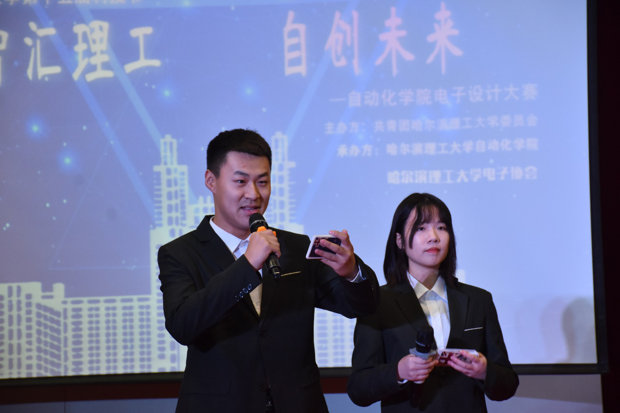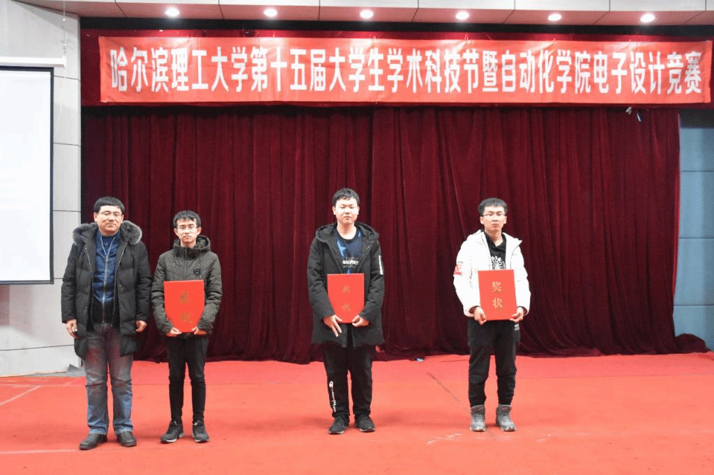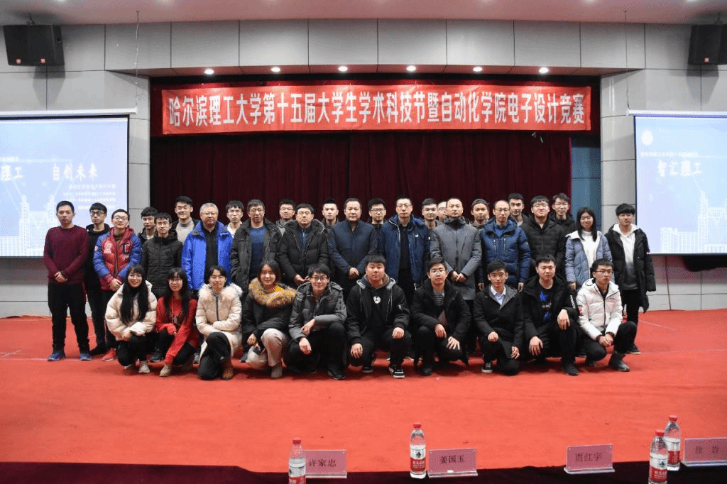 为培养新时代大学生的创新精神和实践能力,哈尔滨理工大学于2019年11月25日晚18时在西区一号楼0220室由共青团哈尔滨理工大学委员会主办、自动化学院承办了以“智慧理工,自创未来”为主题的哈尔滨理工大学第十五届科技节暨自动化学院电子设计竞赛。本次比赛邀请到了哈尔滨理工大学团委书记姜国玉、自动化学院院长许家忠、自动化学院党委书记贾红宇、自动化学院党委副书记徐岩、自动化学院全体辅导员老师,同时邀请到徐军、李双全、李文龙、三位老师担当评委,自动化学院18级、19级全体同学观看了本次大赛。