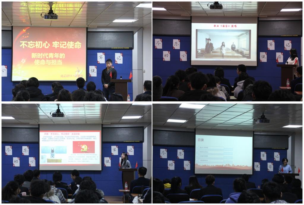 在全党范围内开展“不忘初心、牢记使命”主题教育的同时,作为党的助手和后备军的共青团,更应主动投身于主题教育实践中,追寻初心、勇担使命。充分发挥团组织战斗堡垒作用,激励当代大学生弘扬爱国奋斗精神。2019年11月27日18:00,在化工楼430会议室,化工学院成功举办了第四届以“不忘初心、牢记使命”为主题的团活大赛。院党务辅导员严孝春、勤工助学中心指导教师赵鹏举、院团委书记张希超、学生会指导教师刘东日、学习与发展支持辅导中心指导教师王森,及大一、大二团支部成员出席了本次活动。