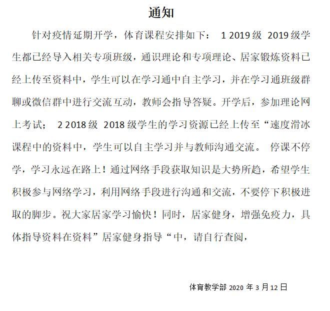 3.针对疫情期间的特殊情况,体育教学部组织教师进行了“居家锻炼”资料的整理与上传,及时补充网上学习资料的不足,并由体育教学部教师亲自为学生录制了健身视频,为学生提供最大居家学习支持。