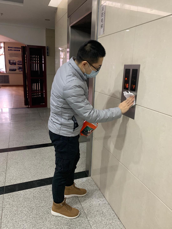 复工前,科技园已对办公区、走廊、卫生间、楼道、电梯间、楼内的设施、设备进行全面消杀防疫。