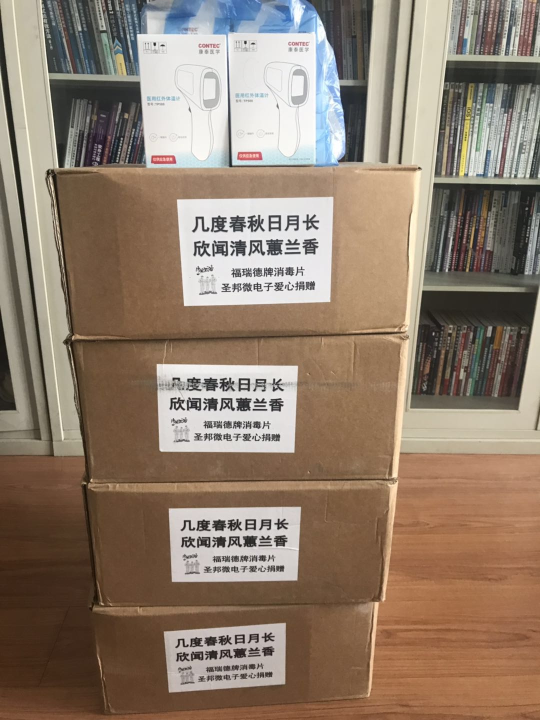 圣邦微电子(北京)股份有限公司专注于高性能、高品质模拟集成电路的研发和销售,是目前A股上市唯一专注模拟芯片领域的半导体企业。多年来,软微学院与圣邦微电子深入开展交流合作,共同探索“校企合作”新模式,取得了许多成绩,公司为集成电路专业无数优秀的毕业生提供了实习、就业的平台。在抗击新冠状肺炎疫情的关键时期,圣邦微电子更是心系师生健康,为学院无偿捐赠康泰红外非接触式测温仪10支,福瑞德消毒片4箱(可配置84消毒液80吨)。众志成城抗疫情,爱心捐助显真情。这批宝贵的防疫物资为学院的疫情防控工作提供了物质支撑,也为即将2020年春季学期顺利开学提供了有力保障。