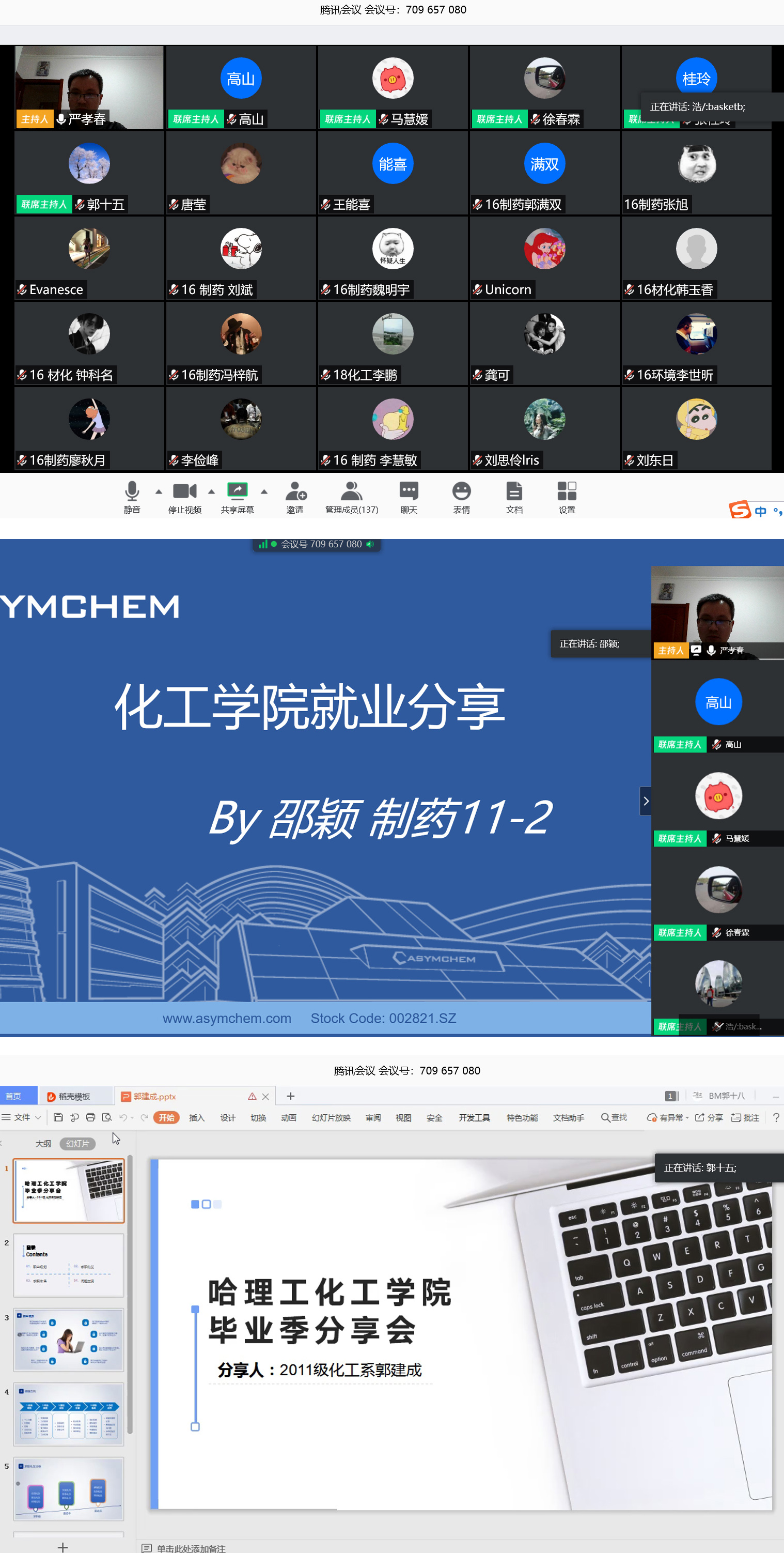 4月28日晚上七点,会议利用腾讯会议平台如期召开,化工学院党委书记徐春霖、院长张桂玲、副书记高山、副院长马慧媛,毕业班辅导员以及一百三余名在校生参加了此次会议。 张院长通过对就业形势的分析,强调了大学生就业的重要性和紧迫性,希望每一位毕业生,积极行动起来,找到一份钟意的工作。