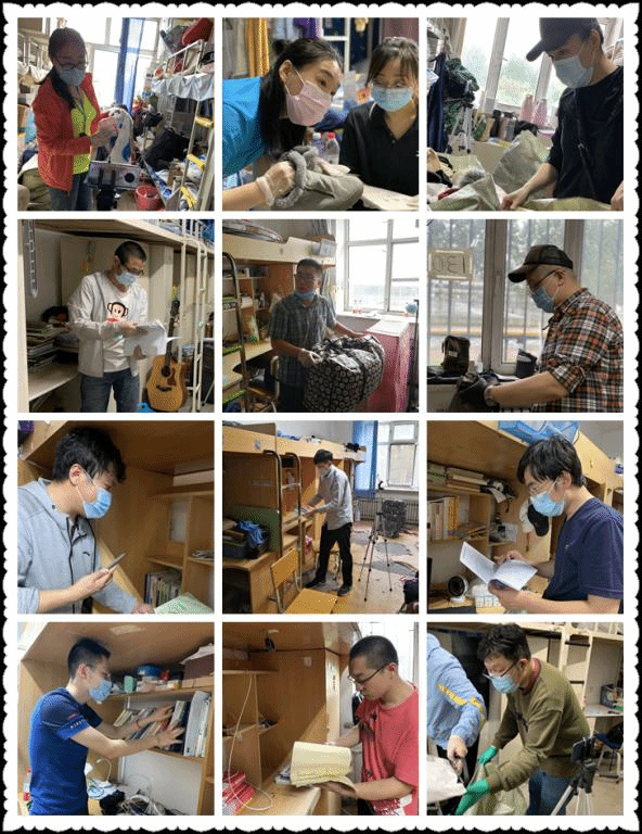 悉心整理,不辞辛劳。6月20日早8:00,随着经过核酸检测的毕业生志愿者返校进驻各自所在的小组,本科毕业生宿舍行李集中整理及邮寄工作正式拉开序幕。度过四载日月光阴,历经四度春华秋实,毕业生的宿舍里积攒了非常多需要老师们帮助整理并邮寄回家的物品。此时老师们从平日里三尺讲坛授华识,半寸素笔解疑章的“大学士”纷纷化身为上天遁地、汗流浃背的“大力士”,将对每一名学生的想念与祝福化作不畏辛苦的动力,在物品归置、打包装箱、称重计费等每一个环节都与每一名毕业生现场视频连线,将整理邮寄全过程对学生实时直播。教师和学生们从清晨一直忙碌到黄昏,不曾停歇,对每一件物品都轻拿轻放逐一问询,将每一个包裹都精心整理仔细检查,让每一间宿舍都井然有序氛围温馨,不知弯了多少回腰,不觉爬了多少次高……为保障毕业生顺心安心放心的收到行李物品,老师们放弃了等待快递企业前来打包称重的短暂休息,主动成为“工匠发货员”,亲手为学生装箱打包。为了包装得更结实,老师们不放过任何细节,尽量避免每一个快递箱出现邮寄风险。一幅幅感人的画面,让校友闫占辉抑制不住内心的感慨,发表了感言。