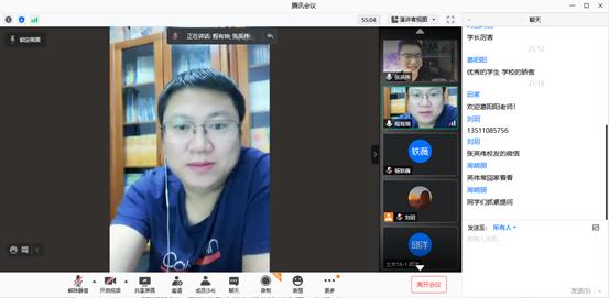 辅导员田家发言,感谢校友张英伟做的分享。中建集团目前在学院招聘的情况,频率越来越高,招聘的人数也越来越多,希望参会的同学们多向优秀校友请教,抓住学习的机会。