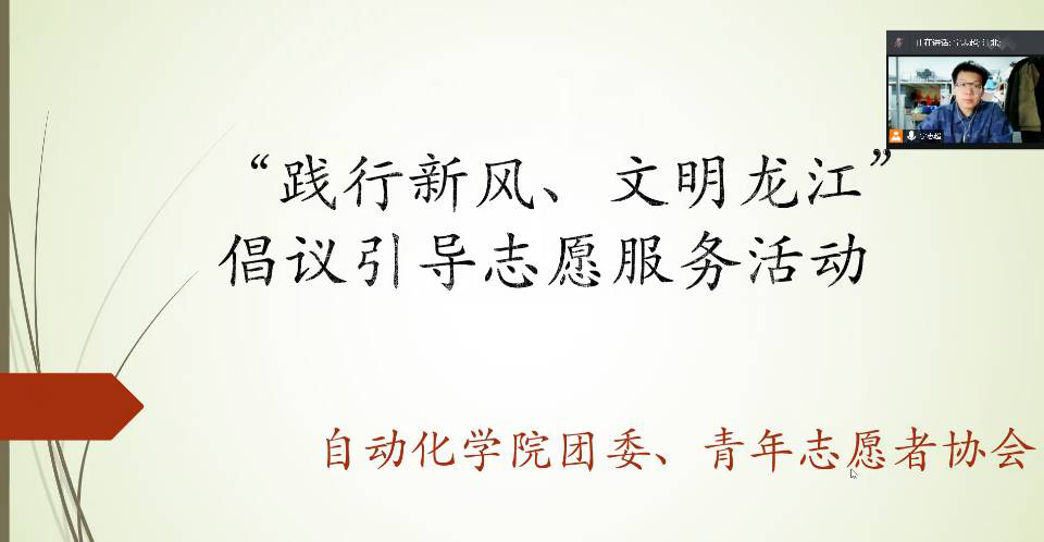 为了让广大学生学习与认识文明新风尚,树立正确的价值导向,争做志愿服务精神践行者,自动化学院团委及青年志愿者协会通过网络直播方式对于学生出行、旅游、就餐、上网、环保等方面广泛进行工艺宣传与文明引导。