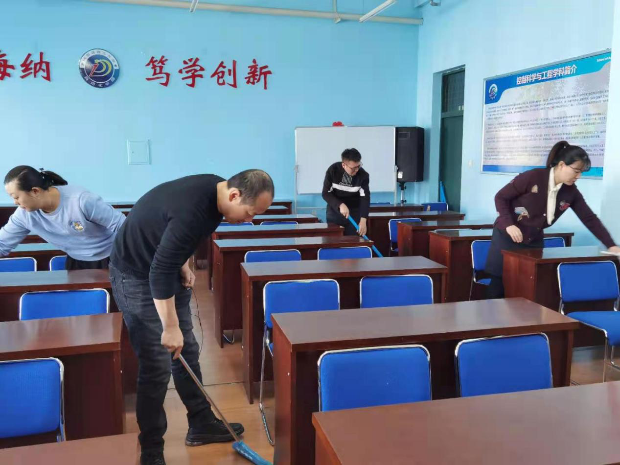 辅导员们分工协作,干劲十足,打扫时毫不马虎,不放过任何一个角落,虽然人员有限,但大家相互协作,经过几个小时的不懈努力,学生活动中心焕然一新,整洁明亮,为同学们返校学习提供了更好的环境。