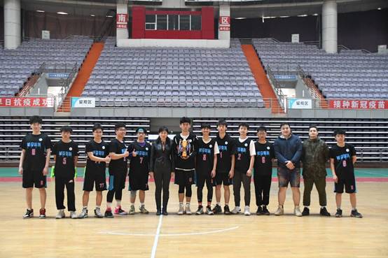 杨芳书记与“总决赛最有价值球员”艾热夏提·阿不都热合曼同学合影
