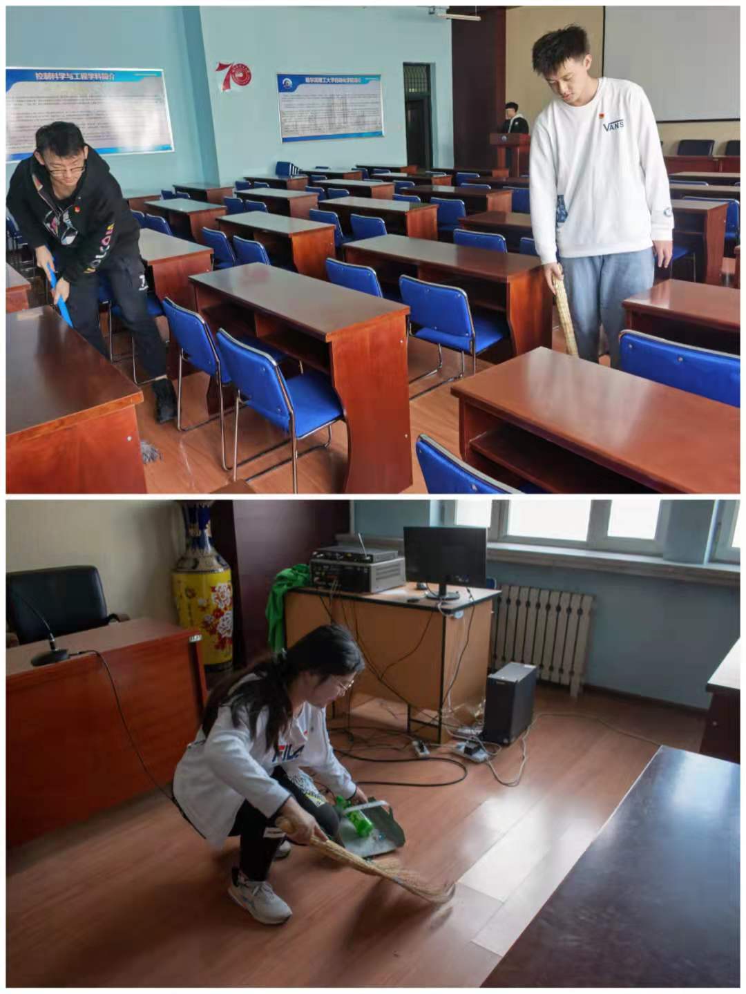 学生党员清扫学院会议室
