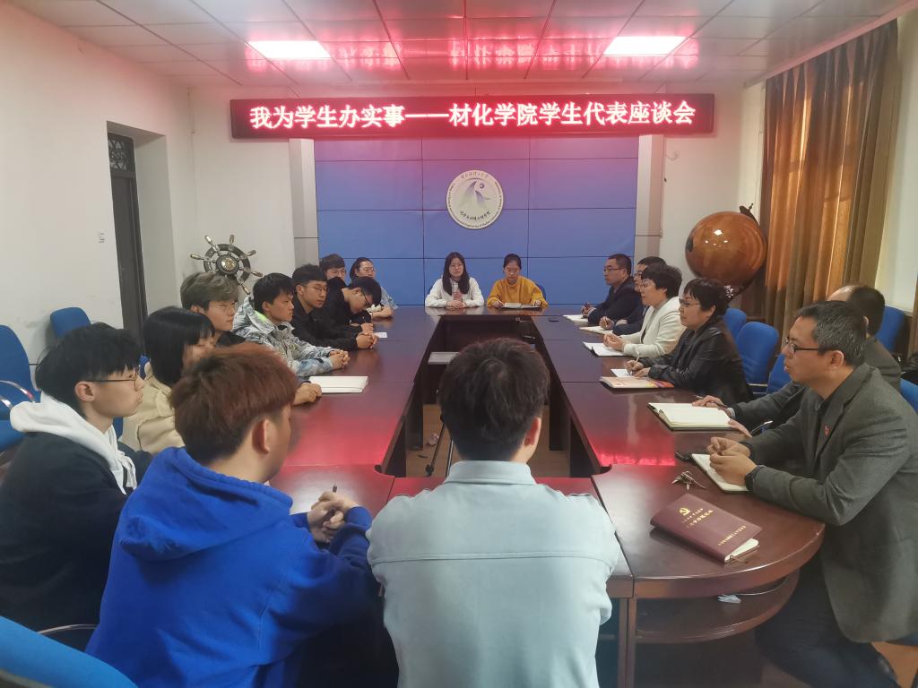 4月13日下午,材化学院“我为学生办实事”座谈活动在化工楼427顺利举行。院班子成员与本科各年级共计12名学生代表就学生关心的学校、学院发展问题,以及学生们目前亟待解决的难题展开热烈讨论,此次座谈由院党委书记张桂玲同志主持。