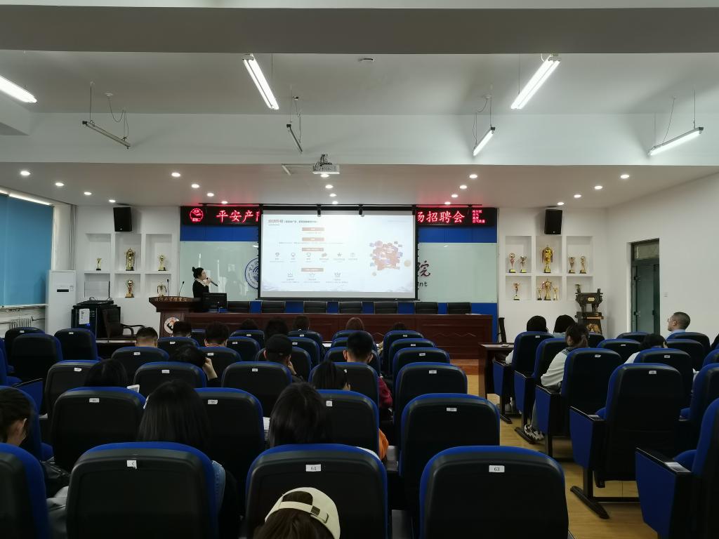 2021年4月27日下午,平安产险黑龙江分公司在我校南区1号楼740报告厅举行宣讲会,本次招聘会重点面向经管学院各个专业的大四毕业生。同时,公司也面向经管学院大三学生提前进行宣讲,为秋季招聘做准备。