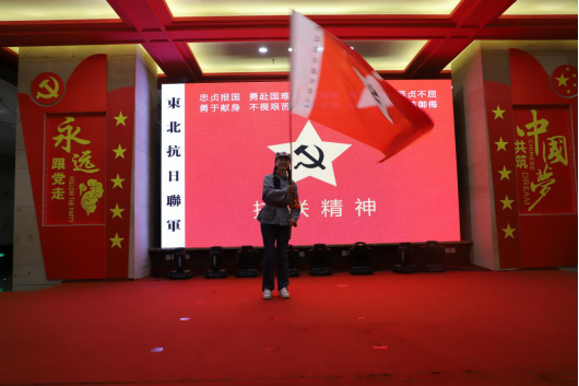 电气学院党委书记单鹂娜同志接过东北抗联军旗