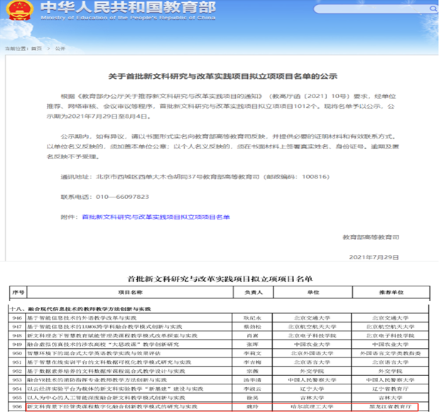 日前,根据《教育部办公厅关于推荐新文科研究与改革实践项目的通知》(教高厅函〔2021〕10号)要求,经单位推荐、网络审核、会议审议等程序,公布首批新文科研究与改革实践项目立项名单。我校经济与管理学院魏玲教授主持的“新文科背景下经管类课程数字化融合创新教学模式的研究与实践”成功获批。该项目是我校获批的第一项国家级新文科教学改革项目,实现了零的突破。同时,学院李继承教授主持的“数字经济时代理工科院校工商管理类专业新文科课程体系建设与实践”获批省级新文科研究与改革实践一般项目。