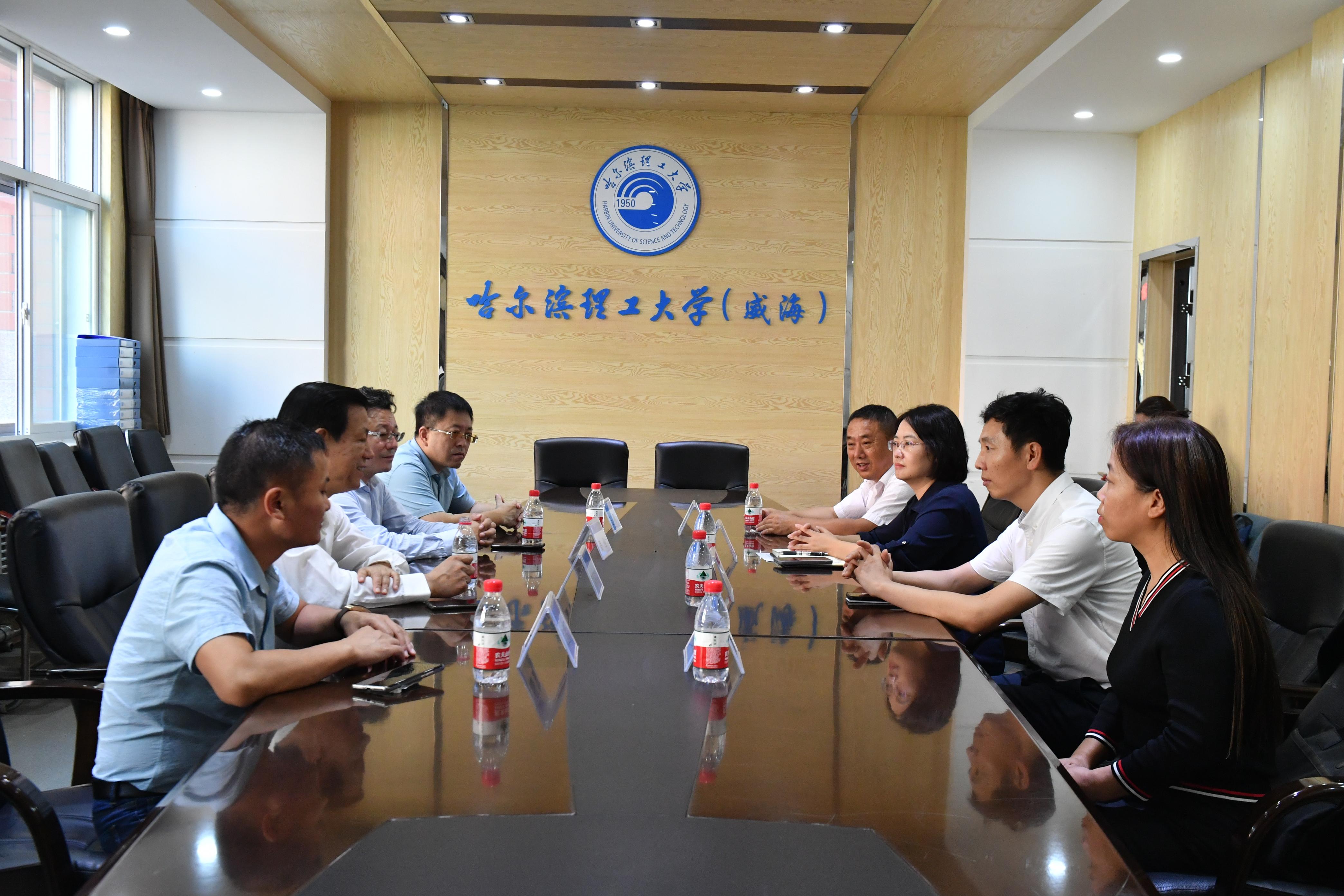 开幕式结束后,九三学社威海市委主委贾国哲,九三学社威海市直支社主委周华,九三学社荣成支社社员、荣成中康医院董事长戴建新,圆点直播山东融媒体新闻中心主任王刚与学院党委副书记赵运平,副院长董晶颢,党委工作办公室主任于全德,经管系副主任姚金鑫在办公楼一楼会议室举行座谈。董晶颢副院长从专业设置、产教融合、服务地方、校企合作等几个方面介绍了学院的基本情况。双方就发展地方经济特色与专业动态调整等方面进行了深入的交流。