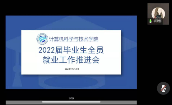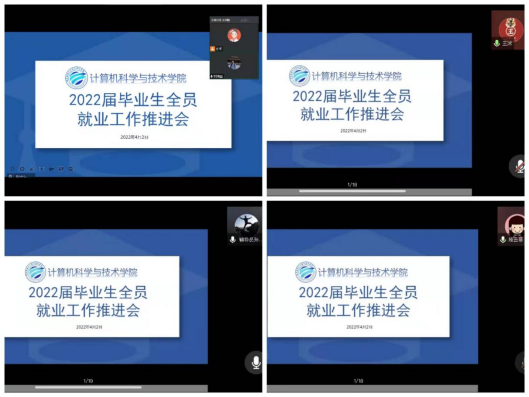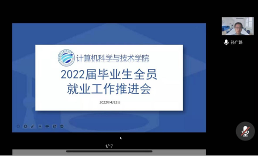 为进一步加强和促进学院毕业生就业工作,推动构建全员就业工作体系,促进毕业生高质量和更加充分就业,分析研判当下就业形势,研讨出台相关就业举措,确保疫情防控期间学院毕业生就业工作稳步推进。4月2日晚19时,计算机科学与技术学院线上召开了2022届毕业生全员就业工作推进会,学院就业工作领导小组成员、全体教师参加会议,学院党委书记孙广路主持会议。