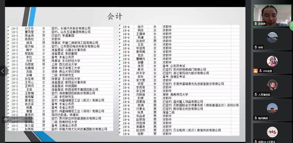 毕业班辅导员臧晓明通报毕业生毕业去向落实情况