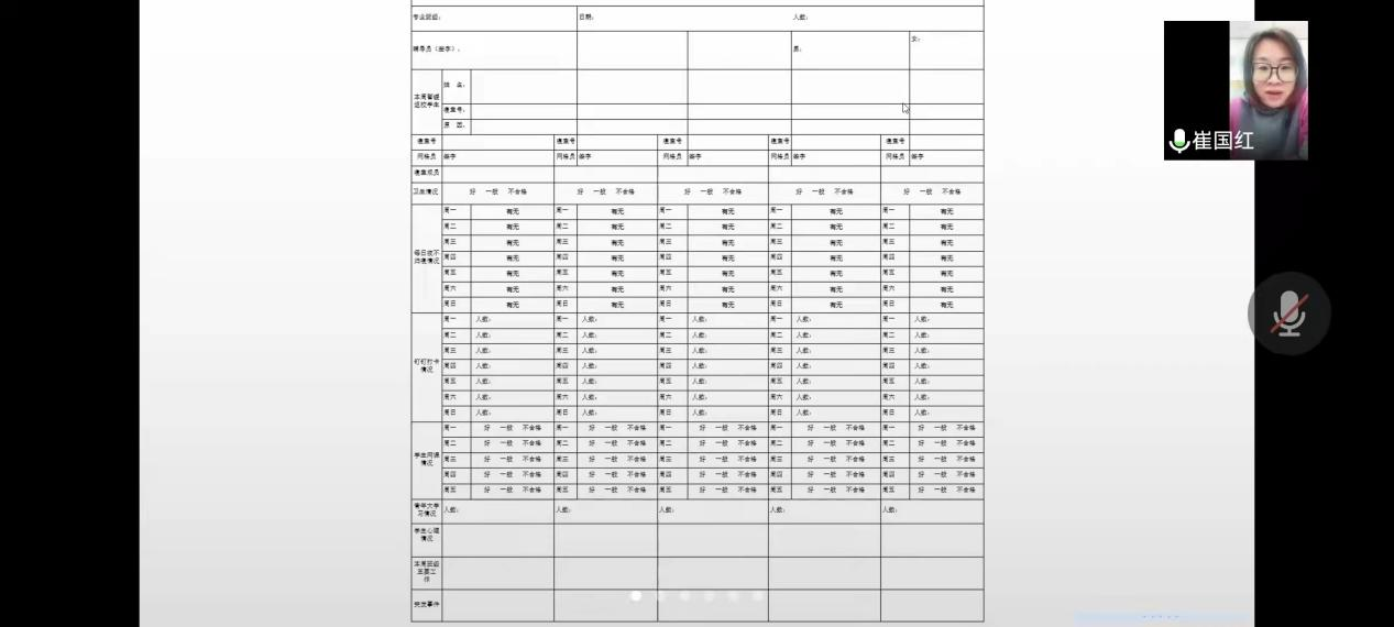 崔国红老师在培训中鼓励网格管理员开展工作时要奋勇争先,凝聚起“众志成城、共克时艰、共战疫魔”的强大合力。网格管理员要充当“宣传员”,走寝调查,广泛宣传疫情防控知识,引导同学们增强防控意识;网格管理员要充当“守门员”,传递发放防疫物资,传达老师、学院和学校的关心,了解同学们的具体困难,做好学校封闭式管理情况下的学生心理健康工作;网格管理员要充当“检测员”,每天定时了解同学们的打卡情况、网课情况和学生的心理健康情况,监督大家不点外卖、按时归寝;网格管理员要充当“服务员”,传导学校人文关怀,心理辅导、舆情管控等服务保障工作,协助辅导员精准开展心理健康工作。