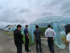 实践团一行10人及七台河市电商园总经理李彦宝在七台河市农投农业集团董事长郭鸿剑及其班子成员陪同下参观了七台河市农投集团连栋温室大棚。温室大棚种植绿色果蔬无农药、味道甘美,受到实践团成员的一致好评。