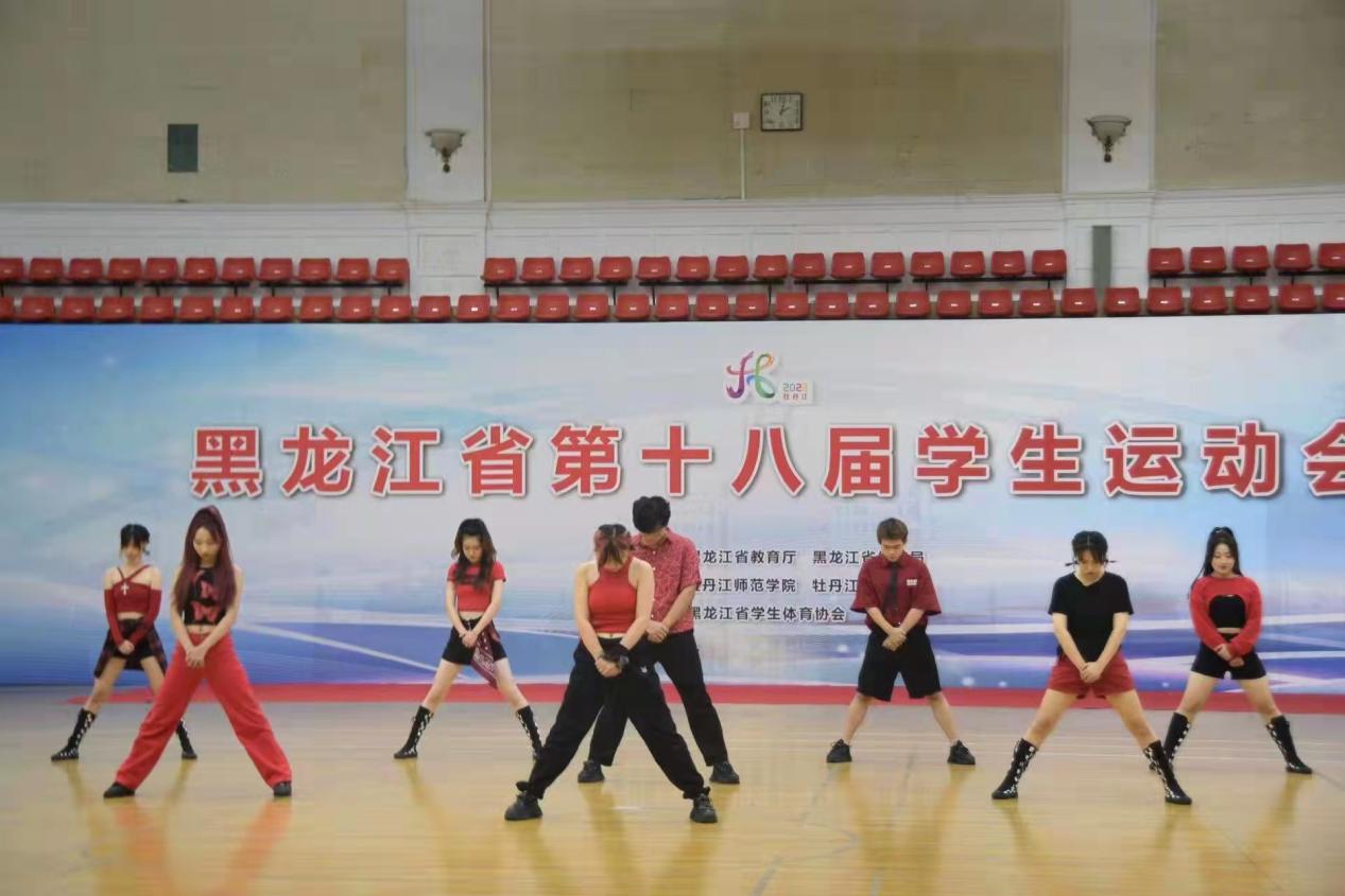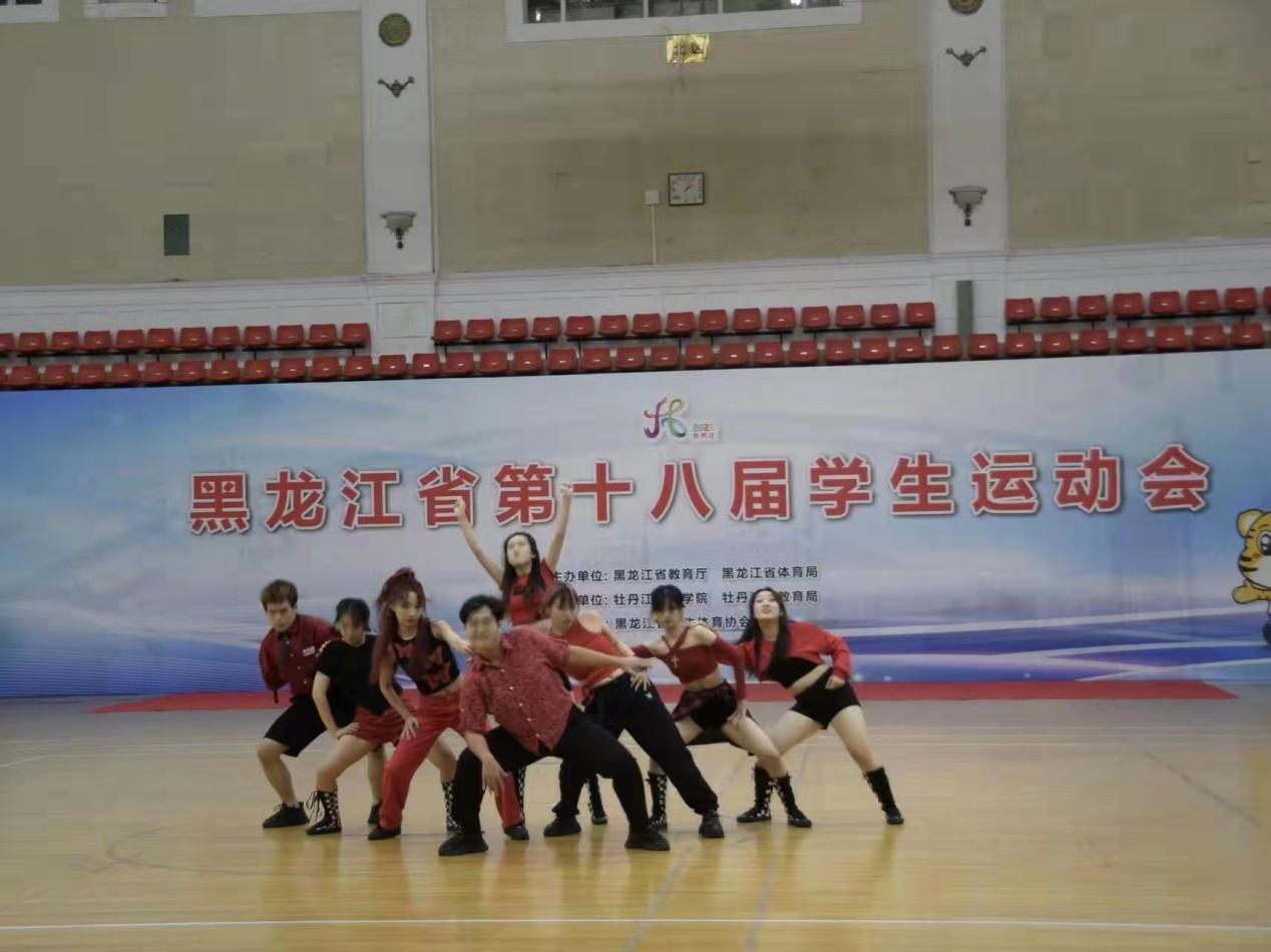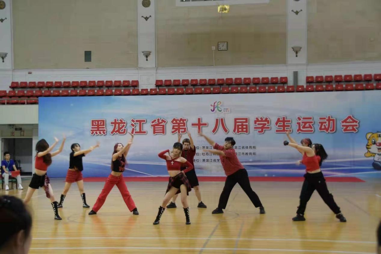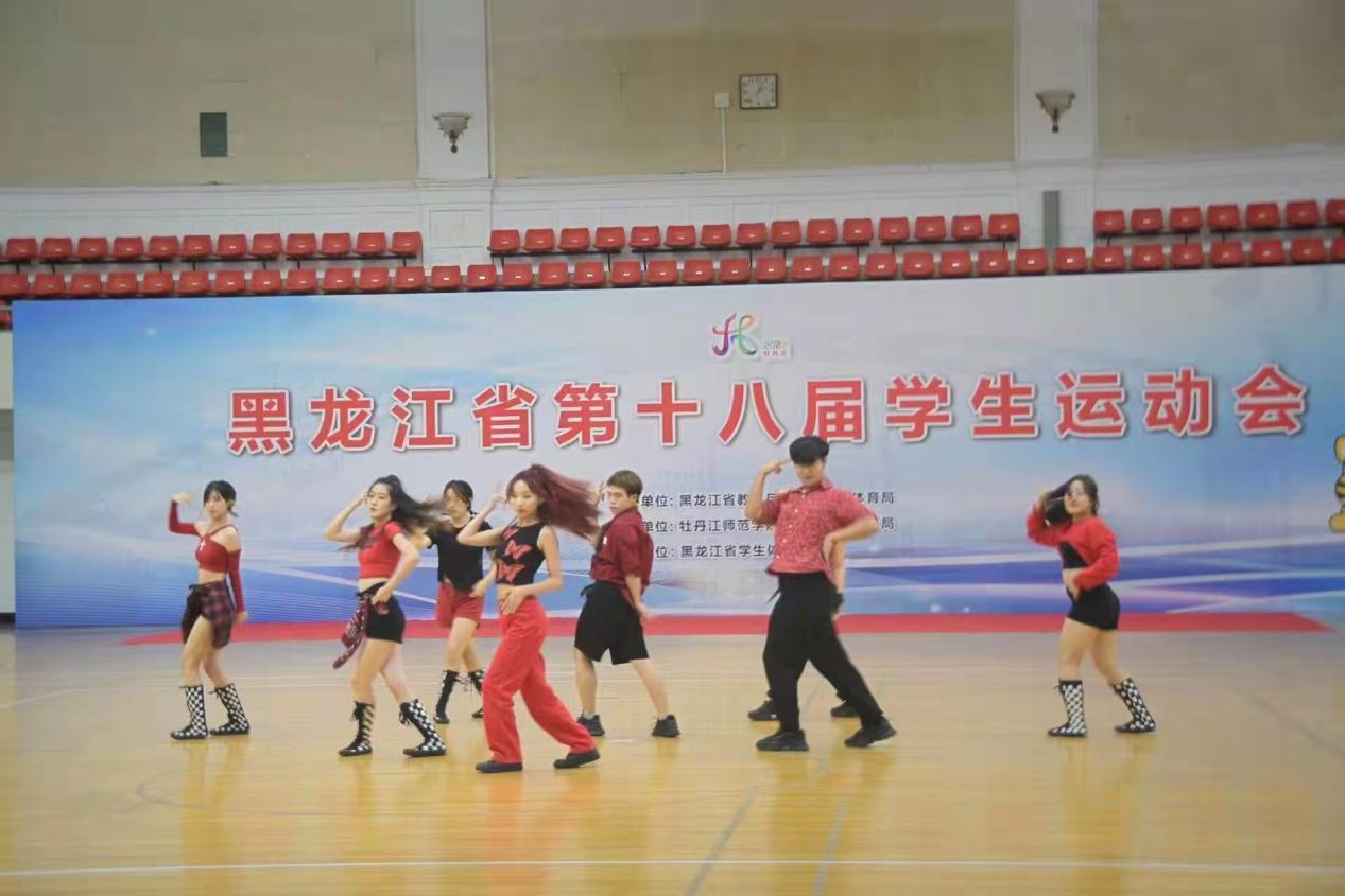 2022年8月13-17日由黑龙江省教育厅、黑龙江省体育局主办的黑龙江省第十八届学生运动会健美操比赛在牡丹江师范学院举行。来自全省18个地市和学校的200余名运动员参加了本次比赛。哈尔滨理工大学健美操队8名运动员在领队郑宏伟,教练苏莉的带领下参加了大学甲组啦啦操项目自由舞蹈组比赛。我校运动员在比赛中发挥出色,最终凭借新颖的套路、娴熟的技术动作以及默契的配合,最终夺得了第二名的优异战绩。