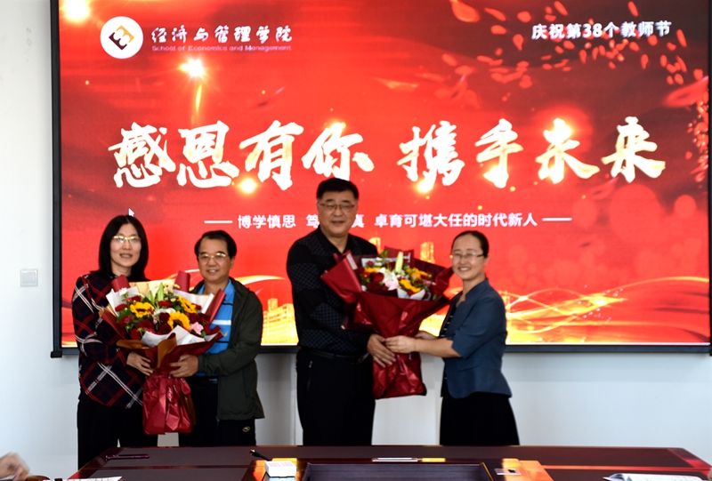 9月9日下午,经济与管理学院召开荣退教师与新入职教师代表座谈会,荣退教师代表修国义教授、高长元教授,新入职教师王雪、梁禹淇、吴悦、徐大庆以及学院班子全体成员和系部主任、党支部书记代表参加了座谈会。座谈会由学院党委书记周长群主持。