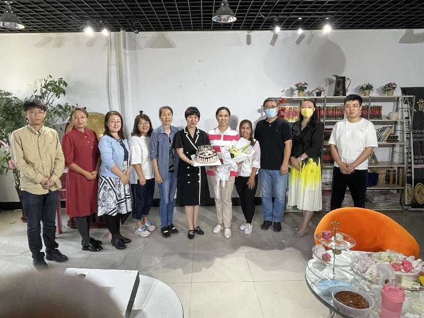 最后留学生代表们为老师们送上了蛋糕,祝愿老师们工作顺利,桃李满天下。