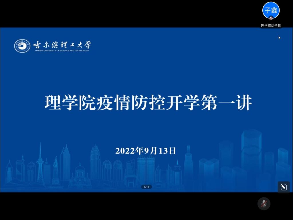 为全面贯彻落实学校新学期疫情防控工作要求,推动校园防控工作科学有序开展,加强新生疫情防控相关知识教育,增强新冠疫情防控风险意识和能力,确保全体新生身体健康和生命安全,根据学校疫情防控需求及工作部署,理学院于9月13日线上召开疫情防控教育专题讲座。会议由学校办公室副主任张浩男主讲,2022级全体新生、在校各年级班长、团支书线上参会,理学院党委副书记宋广军参加会议,会议由新生辅导员孙国宇主持。