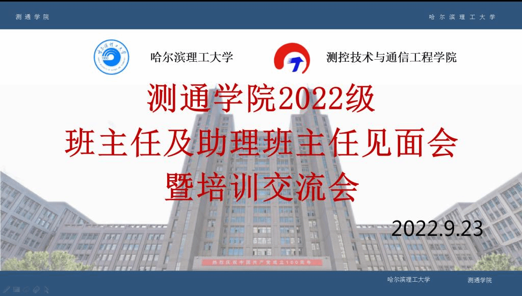 班主任是学校德育工作的灵魂人物,是教学工作的核心力量。为了更好开展新生班级管理和学生德育教育,帮助新生了解自身所学专业特点,明确学习目标,端正专业思想,掌握正确的学习方法,引导学生尽快完成中学生活向大学生活的过渡,践行全员育人、全过程育人、全方位育人工作理念。测通学院于2022年9月23日中午12:30在线上召开2022级新生班主任及助理班主任见面会暨培训交流会。出席本次会议的有测通学院党委副书记张宏磊,教学副院长盖建新,2022级新生辅导员张德龙、李玥桥,2022级全体新生班主任和助理班主任,会议由2022级新生辅导员张德龙主持。