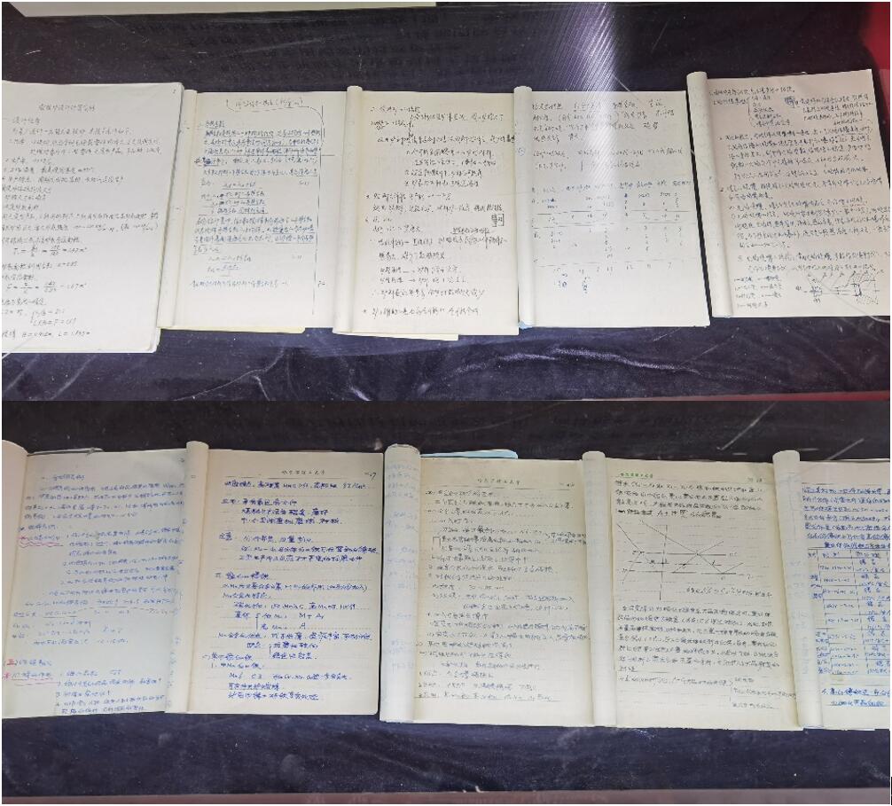 各位老教师的教学笔记书写都十分整洁、美观,笔记中不仅有专业的文字和公式,还有精确的手绘图样,而且通过详细的注释和标记记录着对专业的感悟。虽然这些笔记已经泛黄,但是工整的字迹、清晰的图样,一撇一捺,一点一画,勾勾圈圈,千笔万笔,饱含了老教师对教学的重视与热爱,更加体现了他们一丝不苟的钻研精神,严谨求实的治学态度。他们兢兢业业,把自己最宝贵的青春年华奉献给了教育事业,完美诠释了大珩精神,成就了今天的桃李满天下。