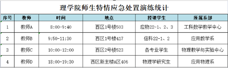 10月14日,各系部教师与学生互相配合,利用理论课、实验课,分别在西区1号楼417和503、2号楼523、新主楼A区406等不同场所进行了不同场景的模拟演练,及时发现不足、及时学习完善,达到了良好的效果。