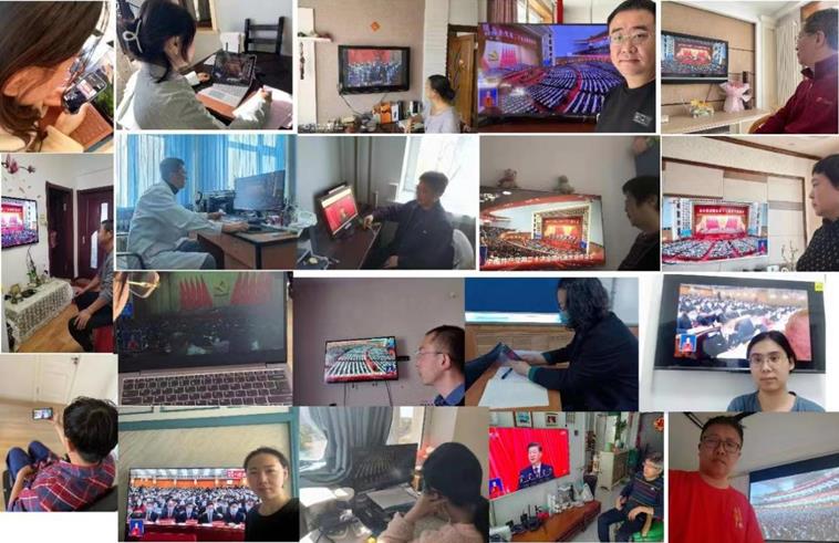 学院领导班子成员、各党支部书记、教师党员代表和学生党员代表在遵循疫情防疫要求的情况下在化工楼430线下集体收看了大会直播盛况,其他全体师生党员通过线上观看了直播盛况。