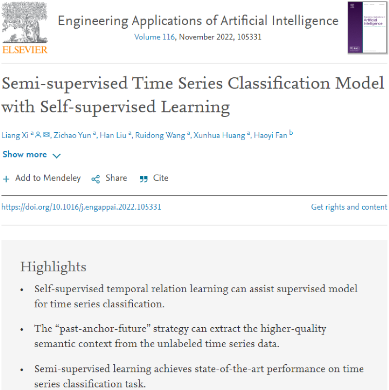 论文《Semi-supervised time series classification model with self-supervised learning》是席亮副教授在研究时序数据挖掘中结合自监督学习方式深入挖掘时序数据“past”、“anchor” 和 “future”的内在联系,从而提升时序数据分类任务的精度。席亮副教授已经将该论文的源码分享到其个人网站https://github.com/mrxiliang/sstsc。