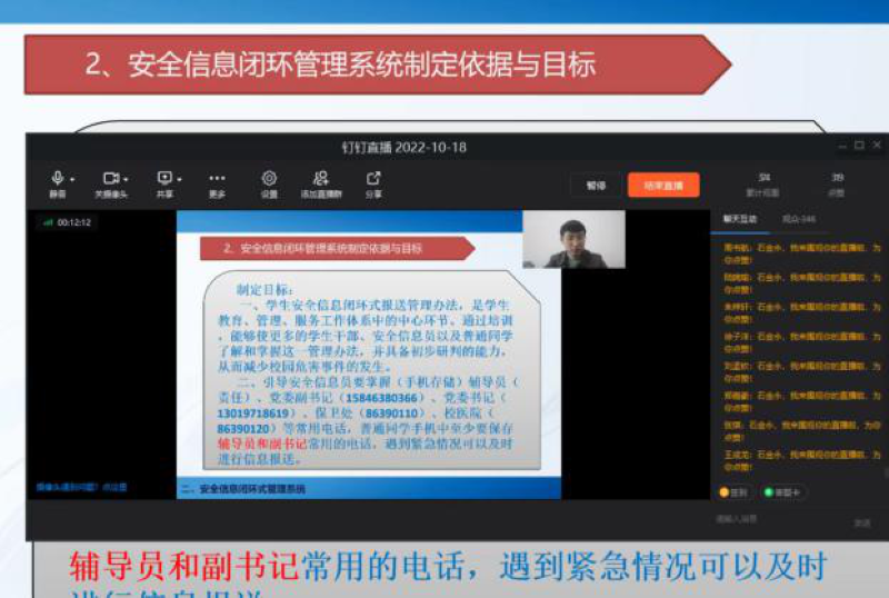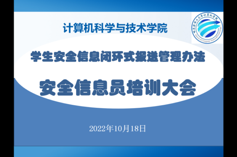 为进一步规范计算机学院学生安全稳定信息报送的内容和程序,畅通反馈渠道,明确相关责任,确保学院及时准确的掌握和有效处理学生安全问题,进一步规范学院学生安全稳定信息员工作流程,提高安全稳定信息员工作的效果和质量,计算机科学与技术学院积极响应学校相关工作通知要求,结合工作实际,于10月13—18日,学院院党委副书记刘坤雁对学生安全稳定信息闭环报送相关工作做整体部署,并通过线上、线下相结合的形式召开学生安全稳定信息员培训大会,提升学院安全稳定信息员理论水平和业务能力,增强工作责任感,计算机科学与技术学院全体辅导员及600余名安全稳定信息员参加了培训大会。培训会由学院学生公寓自管中心指导老师石金永主持。