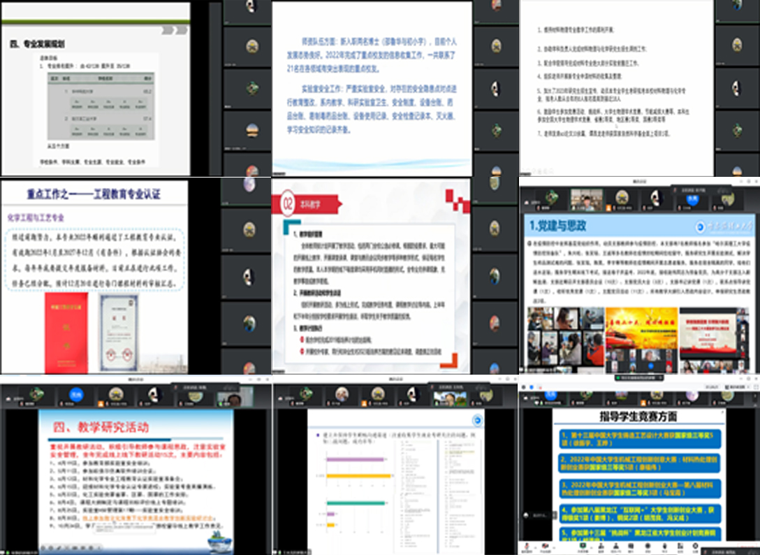 为深入贯彻落实学校能力作风建设年活动的要求,12月7日下午,材化学院通过在线会议形式召开了学院能力作风建设暨2022年度系、中心重点工作落实情况总结汇报会,学院班子成员、系主任、院办主任及代表参加会议。