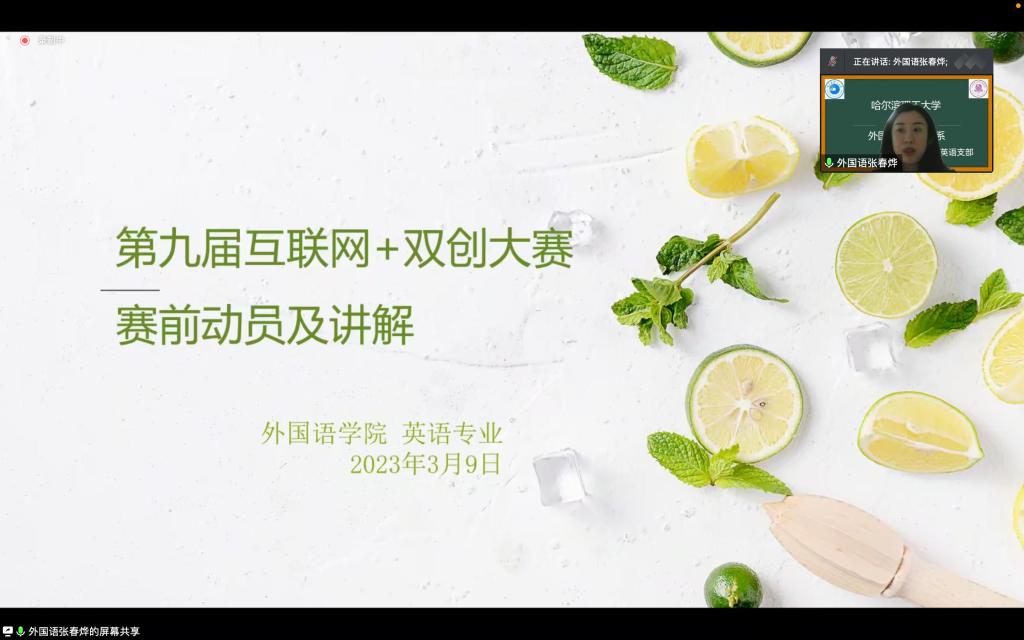 为深入贯彻落实全国教育大会精神,全面落实习近平总书记给中国“互联网+”大学生创新创业大赛、“青年红色筑梦之旅”大学生的重要回信精神,按照《国务院办公厅关于深化高等学校创新创业教育改革的实施意见》等文件要求,加快创新创业人才培养,持续激发广大学生创新创业热情,展示创新创业教育成果,搭建学生创新创业项目与社会资源对接平台,教育部已经连续八年开展“互联网+”大学生创新创业大赛,该项赛事是目前我国覆盖面最广、含金量最高的大学生创新创业比赛。为了更好地组织参赛队伍,发掘优质参赛项目,推动第九届“互联网+”大学生创新创业大赛工作,营造有利于学生成长成才的创新创业氛围,引导和帮助学生树立创新意识,培养创新能力、锻造创业精神。英语系党支部精心准备,于3月9日晚举办互联网大赛动员及详解系列“云”讲座之二。英语系主任高英祺主持本次讲座,英语系党支部书记张春烨做详细解读,英语系师生共百余人参加此次讲座。