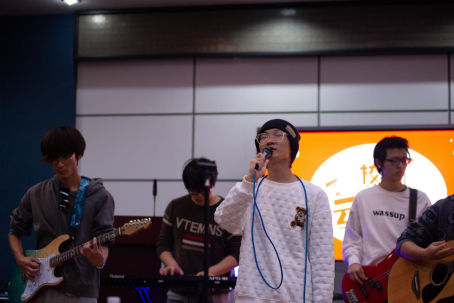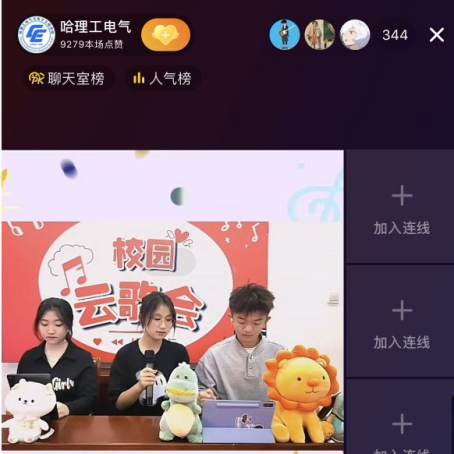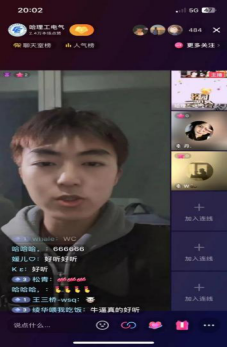 各学院参加云歌会的同学们在宿舍、在实验室、在体育场、在教学楼等校园的每处温馨角落连麦演唱,吉他协会的同学们在直播间现场表演。在直播过程中,兄弟院校的老师同学们也发来实时关注,主持人在直播现场连麦了哈尔滨师范大学的观众同学,将直播氛围再一次推向热潮。