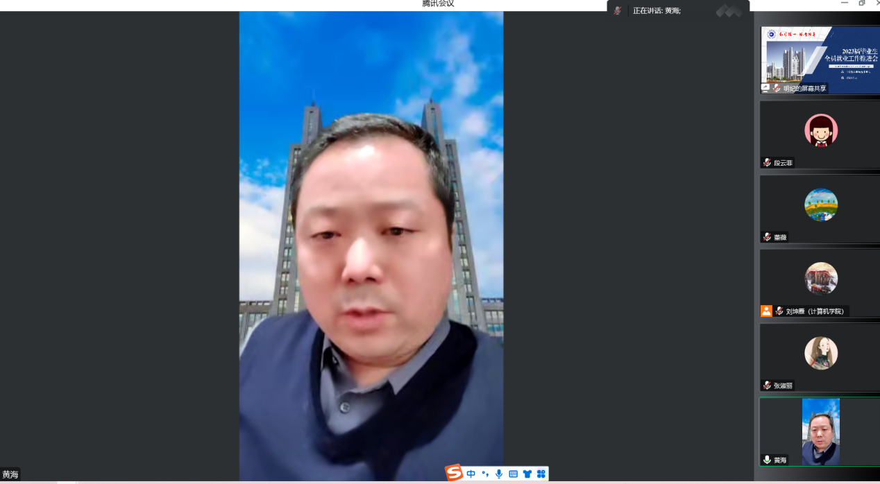 为进一步贯彻落实学校对2023届毕业生就业工作的总体要求,分析研判当下就业形势,研讨出台相关就业举措,扎实开展学院全员就业工作,3月22日19时,计算机学院组织召开2023届毕业生全员就业工作推进会。会议由学院党委副书记刘坤雁主持,学院领导班子成员、各系部主任、副主任、研究生导师和毕业设计指导教师、就业干事、毕业班辅导员参加了本次会议。