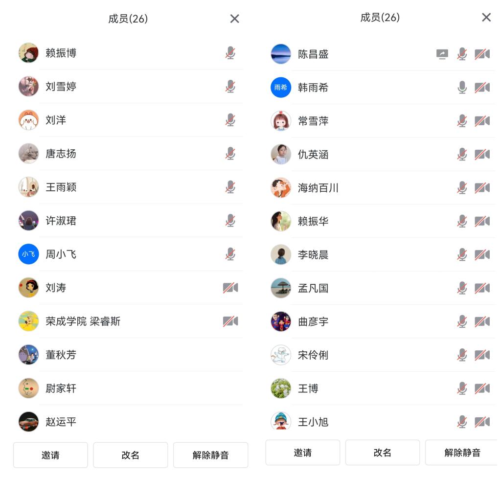 荣成学院部分教师线上参会
