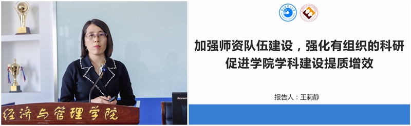 副院长王莉静分析了学科建设的内涵,用详实的数据总结了学院学科建设取得的成绩,剖析了学科建设亟需解决的问题。围绕学科方向布局、科研成果产出、师资队伍结构、学科平台建设等方面问题,她提出三个重要举措:第一,继续凝练学科特色,明细服务领域,加强顶层设计,形成建设合力;第二,以学科方向为引领,加强学术团队建设,引培并举,聚力打造一流师资队伍;第三,加大期刊建设力度,申报学术交流基地,推动学科平台提档升级,全面提升学科影响力。