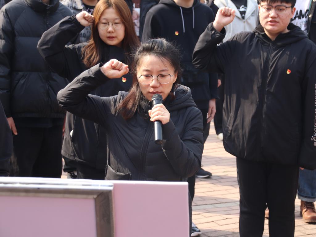 随后,理学院学生工作办公室主任、团委书记、本科生第一党支部书记刘桂娟作为领誓人带领全体参会党员同志重温入党誓词,团委学生秘书长杨忠烨作为领誓人带领全体参会同学重温入团誓词。大家高举右手,紧握右拳,铮铮誓词回荡在理学院的上空,昭示着理学院学子奋勇拼搏、报效祖国的决心。