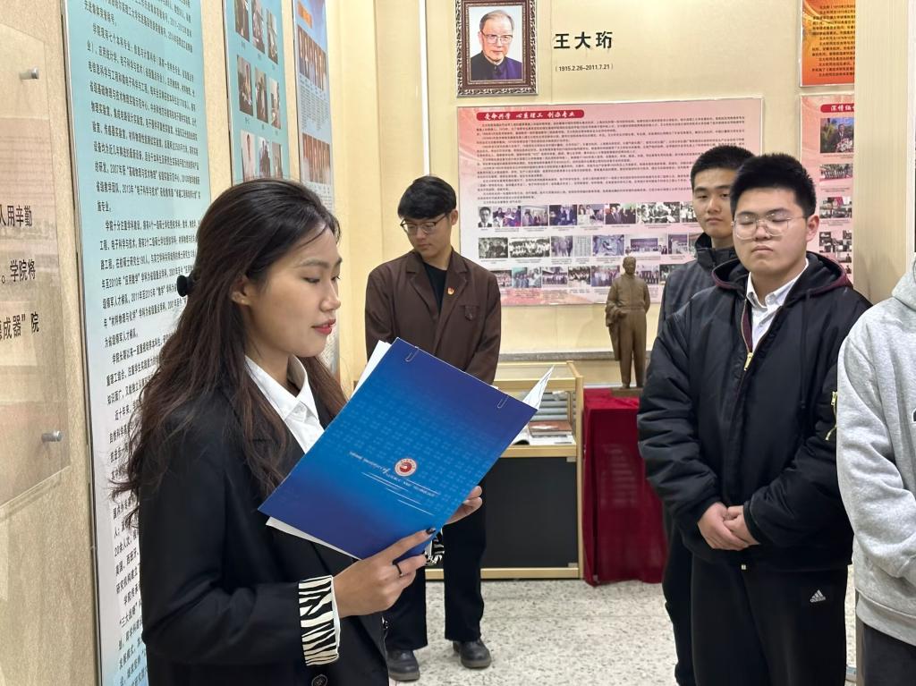 最后,全体参会成员来到理学院院史馆,在理学院团委学生秘书长刘行的带领下,参观学院建院以来发展到现在的各类展品,领略学院几十年来的发展和变革,感悟老一辈教育家开拓事业的不易。活动结束后,刘桂娟在院史馆与参会学生展开交流,热心回答同学们提出的问题。刘桂娟表示,理学院数学系和物理系的全体学生应秉承王大珩老校长的价值观念,学习大珩先生科学家的本色、爱国者的底色,以国家富强和社会安定为己任,为实现中华民族伟大复兴的中国梦而努力奋斗。
